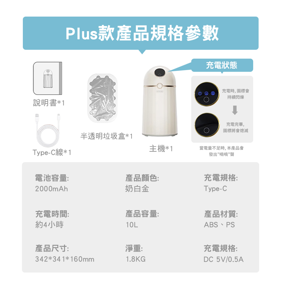 全自動打包垃圾桶-Lite 無蓋款(附原廠充電線)